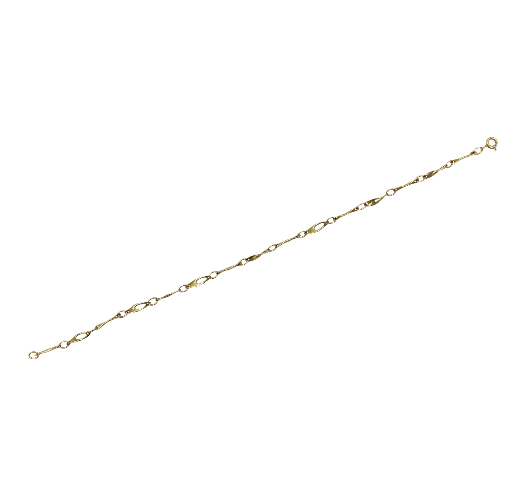 Elegantní náramek ze žlutého zlata, který zaujme svou jednoduchostí a jemným designem. Články ve tvaru protáhlých oválků dodávají šperku moderní a nadčasový vzhled, který se hodí pro každodenní nošení i speciální příležitosti.