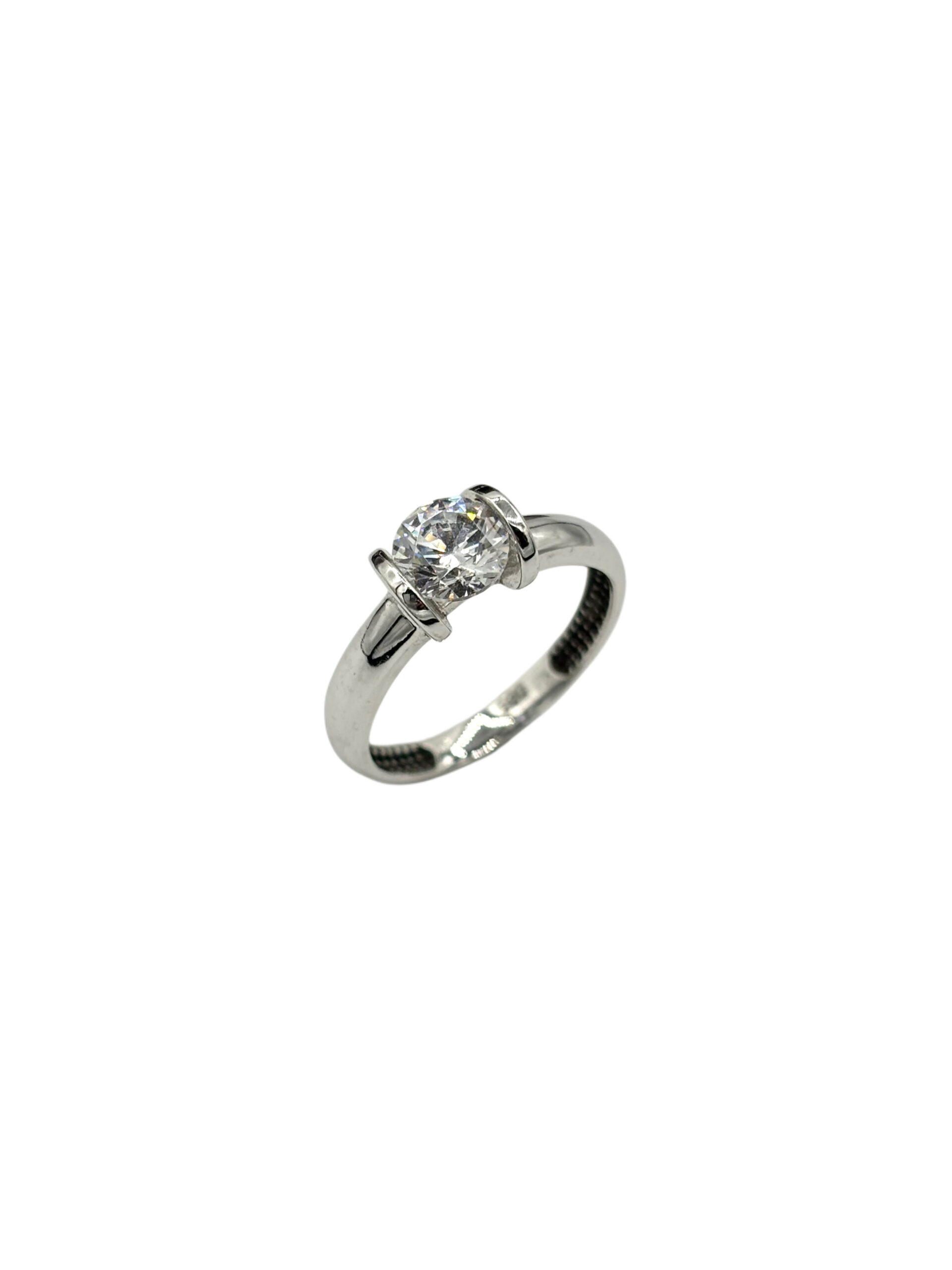 Prsten z bílého zlata se zirkonem v moderním uchycení