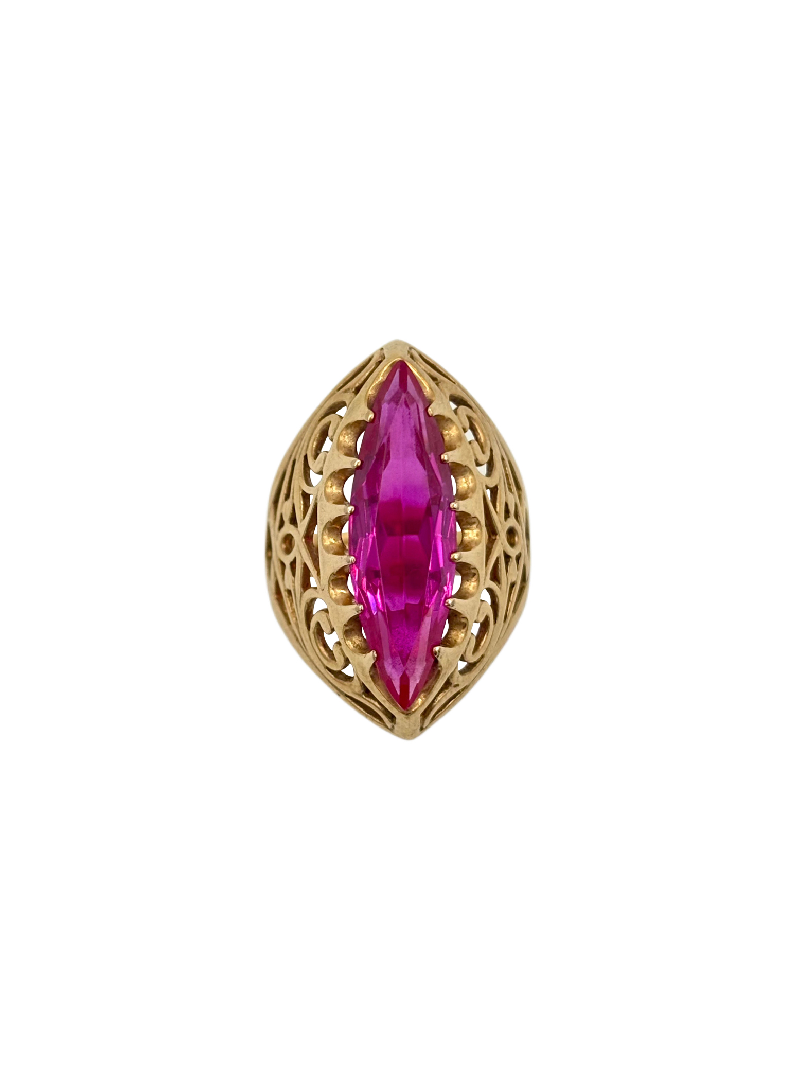 Prsten z růžového zlata s růžovým kamenem marquise